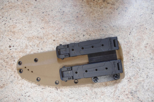 TOPS KNIVES PRATHER WAR BOWIE COYOTE BROWN CUSTOM KYDEX SHEATH W/ DOUBLE MOLLE LOKS BY RED HILL SHEATHS