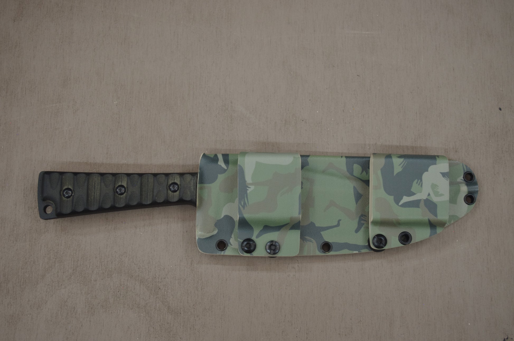 I use two custom Kydex closed loops that your belt threads through for the horizontal carry. On smaller blades I will use one loop. I make them in 1 1/2" and 1 3/4" width.
